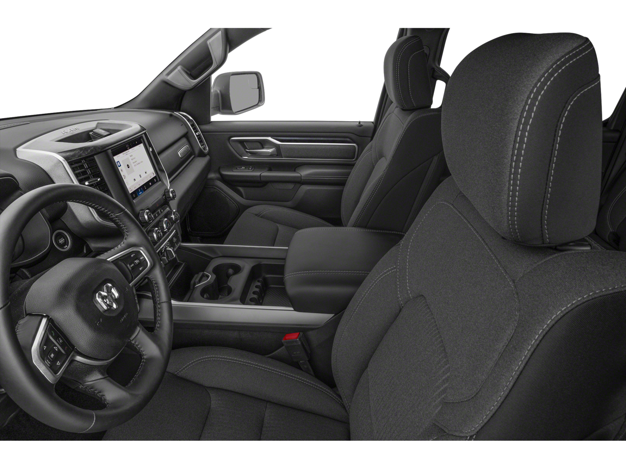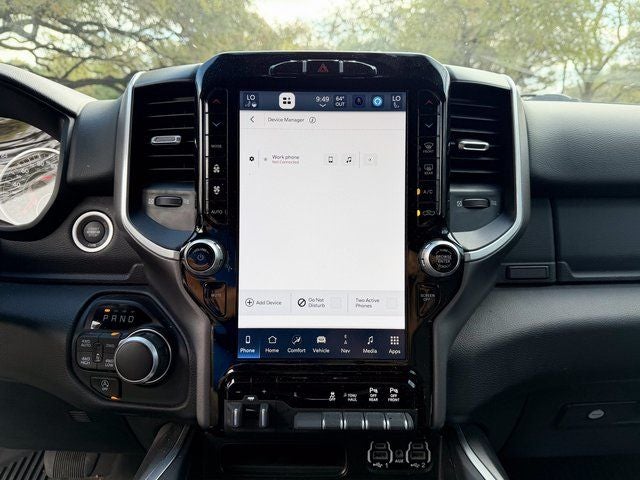 115V Auxiliary Power Outlet, 12 Touchscreen Display, 2nd Row In Floor Storage Bins, 3 Rear Seat Head Restraints, 4 Way Front Headrests, 400W Inverter, 4G LTE Wi-Fi Hot Spot, 9 Amplified Speakers w/Subwoofer, Air Conditioning ATC w/Dual Zone Control, All R1 High Radios, All Radio Equipped Vehicles, Apple CarPlay, Auto-Dimming Exterior Driver Mirror, Auto-Dimming Rear-View Mirror, Big Horn Level B Equipment Group, Black Exterior Mirrors, Black Interior Accents, Black Premium Power Mirrors, Body Color Door Handles, Body Color Exterior Mirrors, Body Color Front Bumper, Body Color Premium Power Mirrors, Body Color Rear Bumper w/Step Pads, Bucket Seats, Center Console Parts Module, Class IV Receiver Hitch, Cluster 7.0 TFT Color Display, Connected Travel & Traffic Services, Connectivity - US/Canada, Convex Wide-Angle Exterior Mirror Insert, Deluxe Cloth Bucket Seats, Disassociated Touchscreen Display, Exterior Mirrors Courtesy Lamps, Exterior Mirrors w/Heating Element, Exterior Mirrors w/Supplemental Signals, For Details, Visit DriveUconnect.com, For More Info, Call 800-643-2112, Front Fog Lamps, Front LED Fog Lamps, Front Seat Back Map Pockets, Full Length Floor Console, Global Telematics Box Module (TBM), Glove Box Lamp, Google Android Auto, GPS Antenna Input, GPS Navigation, HD Radio, Heated Front Seats, Heated Steering Wheel, Integrated Center Stack Radio, Integrated Voice Command w/Bluetooth®, LED Footwell Lighting, LED Reflector Headlamps, LED Taillamps, Lone Star Badge, Manual Adjust 4-Way Front Passenger Seat, Media Hub w/2 Charge Only USBs, ParkSense Front/Rear Park Assist w/Stop, Power 2-Way Driver Lumbar Adjust, Power 8-Way Driver Seat, Power Adjustable Pedals, Power-Folding Mirrors, Premium Lighting Group, Quick Order Package 27R Lone Star (Regional), Radio: Uconnect 5 Nav w/12.0 Display, RAM Grille Badge - Chrome, Rear 60/40 Folding Seat, Rear Center Armrest, Rear Dome w/On/Off Switch Lamp, Rear Power Sliding Window, Rear Window Defroster, Remote Start System, Security Alarm, SiriusXM Radio Service, SiriusXM Satellite Radio, SiriusXM w/360L, Sport Appearance Package, Sport Decal, Sun Visors w/Illuminated Vanity Mirrors, Universal Garage Door Opener, USB Host Flip.